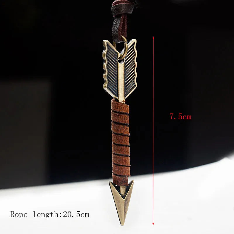 Liebst du Geschichte? Liebst du Mode? Möchten Sie ein Schmuckstück tragen, das sowohl stilvoll als auch bedeutungsvoll ist? Dann brauchen Sie unsere handgefertigte Pfeil-Anhänger-Halskette aus Vintage-Leder!
