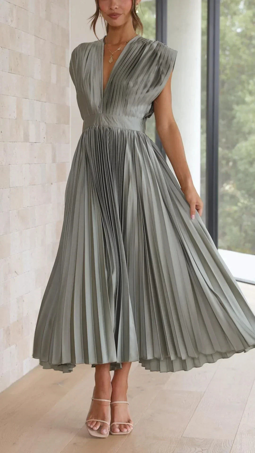 Entdecke das Isabella Kleid mit V-Ausschnitt und Schleifenverschluss am Rücken, dein neuer stilvoller Begleiter, der Funktionalität und schicke Ausstrahlung kombiniert.