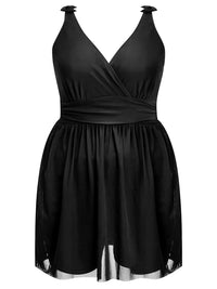 Mach dich bereit für den Sommer mit unserer Plus Size Stilvollen Bademode! Dieser Tankini mit V-Ausschnitt und geschlitztem Saum ist perfekt für Strandtage oder zum Entspannen am Pool. Sein schwarzes Bodysuit-Design verleiht deiner Strandkollektion eine elegante Note. Dieser V-Ausschnitt Tankini mit geschlitztem Saum-Badekleid in klassischem Schwarz ist ideal für kurvige Frauen auf der Suche nach trendiger und schmeichelhafter Bademode. Ein Muss für deine Strandausflüge. Bleib den ganzen Sommer über modisch und selbstbewusst!
