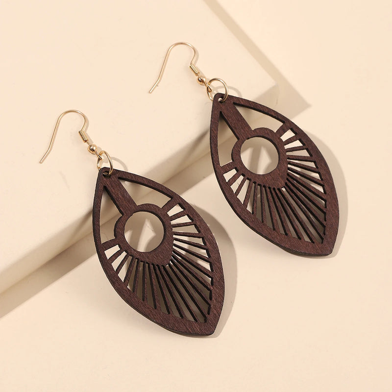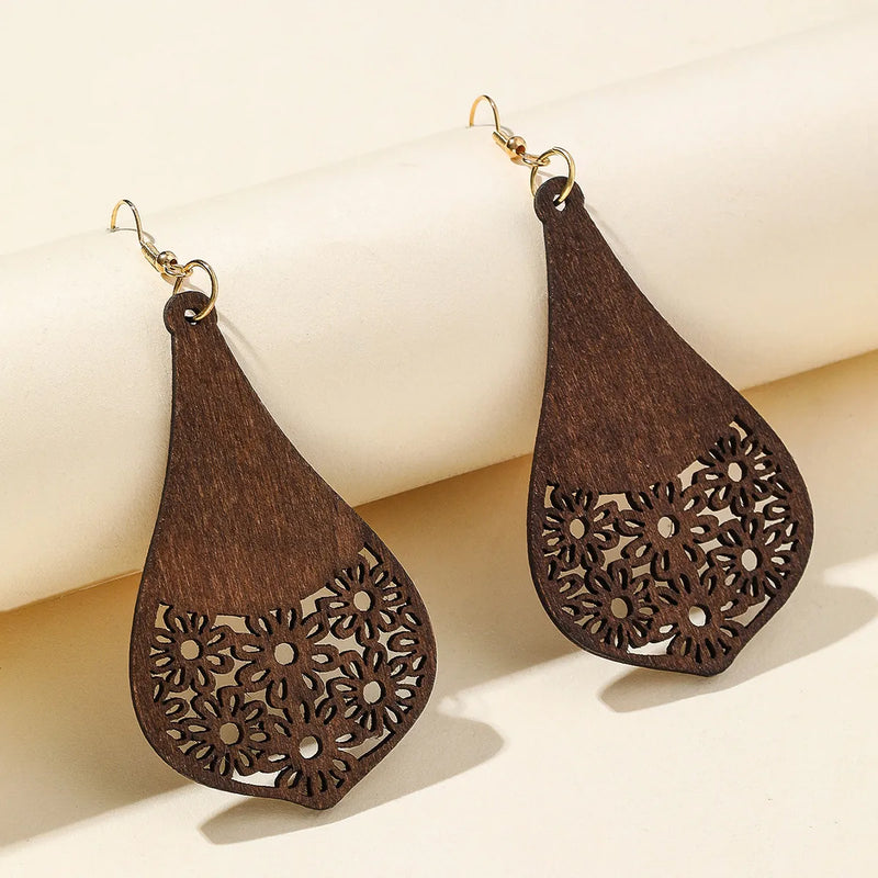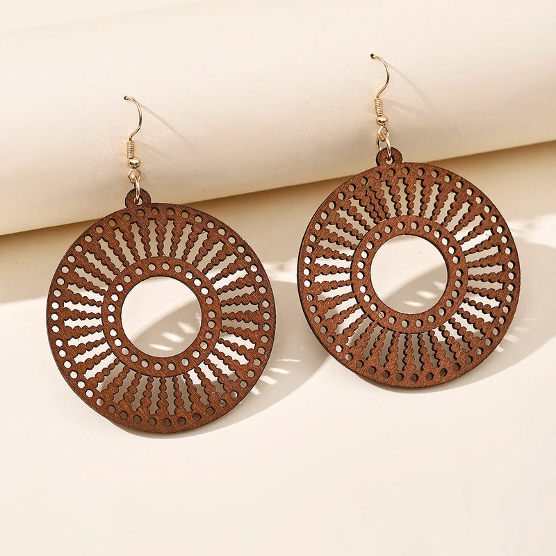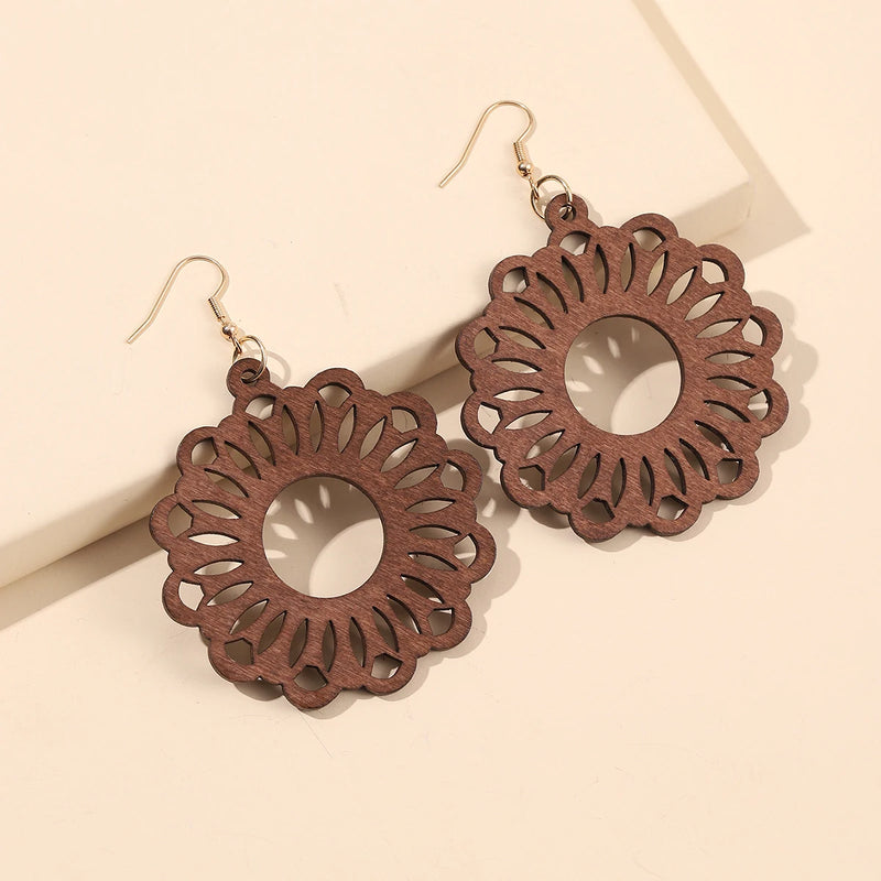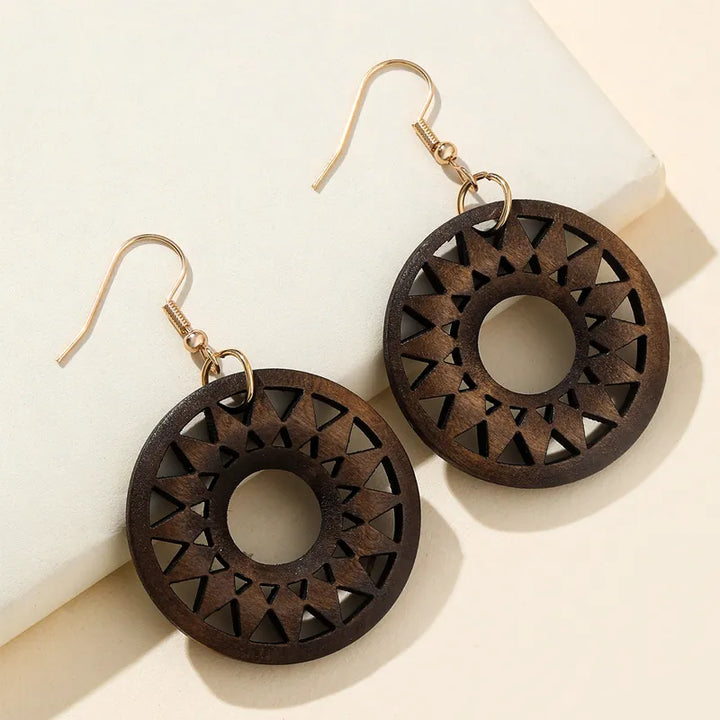 Unterstreichen Sie Ihren Bohème-Stil mit unseren geschnitzten Retro-Holzohrringen, die ethnische, hohl geschnitzte Muster für einen unverwechselbaren und einzigartigen Look präsentieren. Die Ohrringe haben ein Vintage-inspiriertes Design mit aufwendigen Details und verleihen Ihrem Outfit einen Hauch von Retro-Charme. Diese aus braunem Holz gefertigten Statement-Ohrringe sind leicht und bequem und können den ganzen Tag getragen werden.