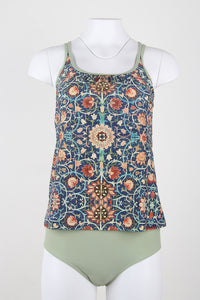 Freust du dich auf die sonnigen Tage am Strand? Suchst du nach dem idealen Badeanzug, der sowohl Komfort als auch einen unverwechselbaren Stil bietet? Unser ärmelloses Tankini-Top mit seinem dynamischen, orientalischen Design und vorteilhaften Schnitten ist kreiert worden, um dich zum Strahlen zu bringen und gleichzeitig optimalen Komfort zu gewährleisten. Perfekt für ausgedehnte Tage unter der Sonne, ermöglicht es dir, dich frei zu bewegen und das Meer in vollen Zügen zu genießen. Bist du bereit, diesen Sommer stilvoll zu glänzen?