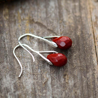 Rote Jaspis Ohrringe, Tropfenform, eleganter Schmuck für Damen, Naturstein, Silberhaken.