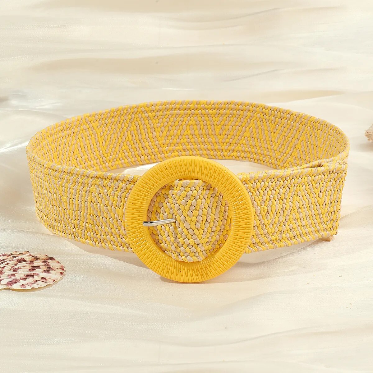 Steigern Sie Ihren Stil mit diesem gewebten Strohgürtel, der Ihrem Look einen Boho Touch verleiht. Das breite Bund Design ist nicht nur trendig, sondern auch super bequem und der Gummizug ermöglicht eine einfache Anpassung für die perfekte Passform. Dieser sorgfältig gewebte Gürtel aus Stroh hat eine coole, umweltfreundliche Ausstrahlung.